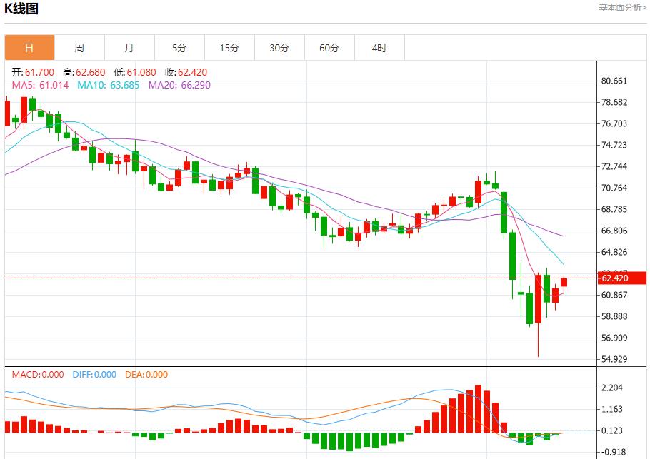 Pasar minyak mentah: Sehingga 20:18 Beijing, minyak A.S. meningkat, kini pada 62.410, peningkatan sebanyak 1.48%. Sebelum New York, harga minyak mentah meningkat dalam perdagangan intraday baru-baru ini, mencabar tahap rintangan utama $ 61.50, disokong oleh kemunculan gelombang pembetulan kenaikan harga jangka pendek dan kemunculan isyarat positif dari indeks kekuatan relatif (RSI). Walau bagaimanapun, harga juga menghadapi halangan yang kuat, iaitu rintangan EMA50.
